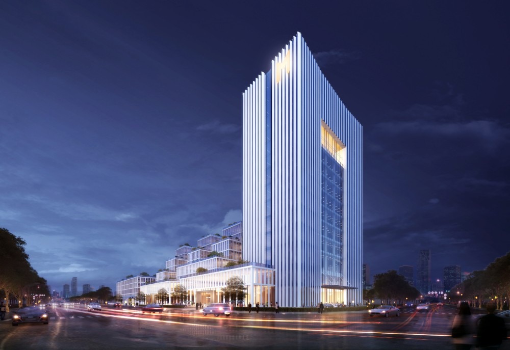 采用直线条的设计元素,通过单体表面极具现代感的落地玻璃和金属材质的遮阳构架的对比和碰撞,以及钢结构、玻璃等现代材料表现,使建筑呈现先锋前卫又不失严谨的姿态,同时又具有极强的设计感和存在感,体现了企业文化的内涵,成为极具风格的科技工业园。结合基地布置建筑,形成多个空间,车间为方形面状体型,相对规整,通过对建筑和绿化各空间的安排布置,形成空间序列与层次,创造独特的空间意境。