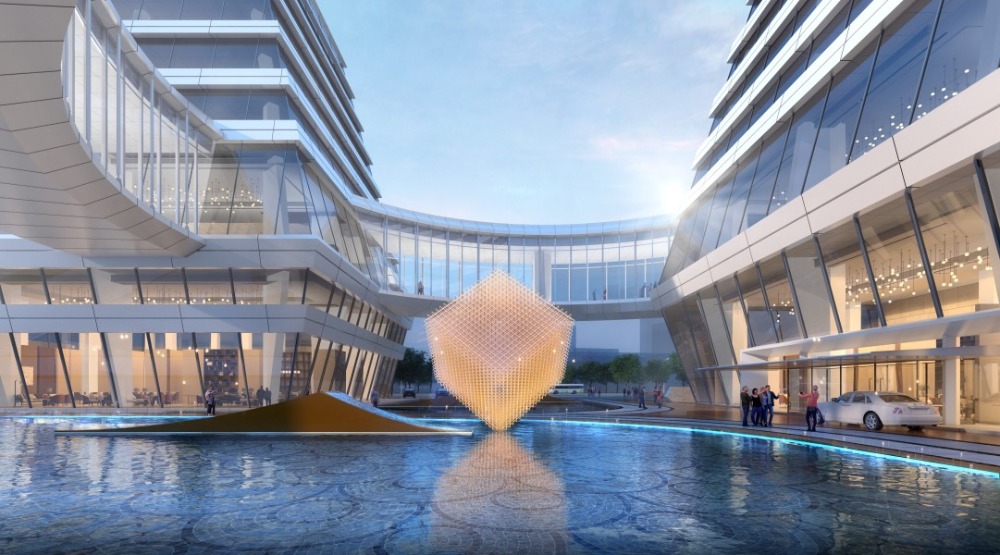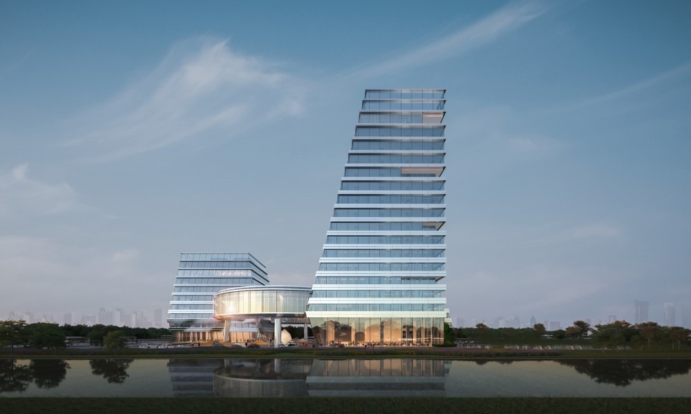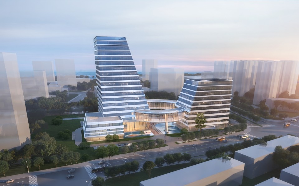 方案秉承“让陆地与海洋互联”的使命,萃取了“脐带电缆”、“企业理念-团队制胜的文化,持续创新的精神,行稳致远的理念”作为设计依据,以“让陆地与海洋互联”为设计理念,通过一个圆环展览串联两栋办公塔楼,打造高效便捷、富有生机的、能够 激发创意的活力办公空间,旨在创造一座多元互联、高效便捷的且专属东方理念意向的地标建筑。