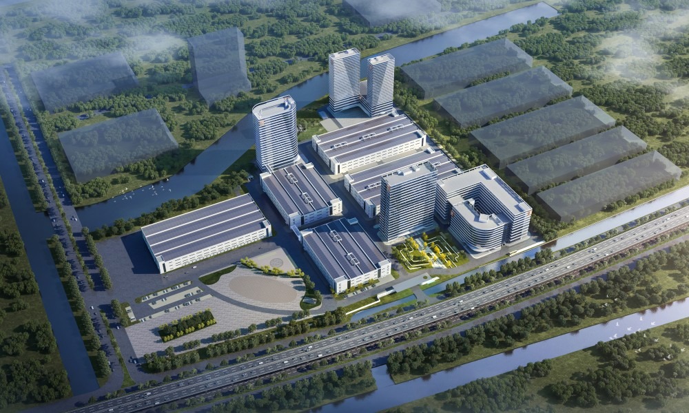 海尔施生物医药研发园位于宁波北仑区,总建面约38万㎡,建筑高度约100米。项目包含现状厂房升级改造及新建部分:新建3栋高层丙类厂房(含办公)、1栋30层双塔宿舍楼及配套裙房、门卫及地下车库。保留中部厂房,新建分南北两区布局,结合小浃江绿地打造生态公园,以现代简约立面塑造高端生命健康产业园区。