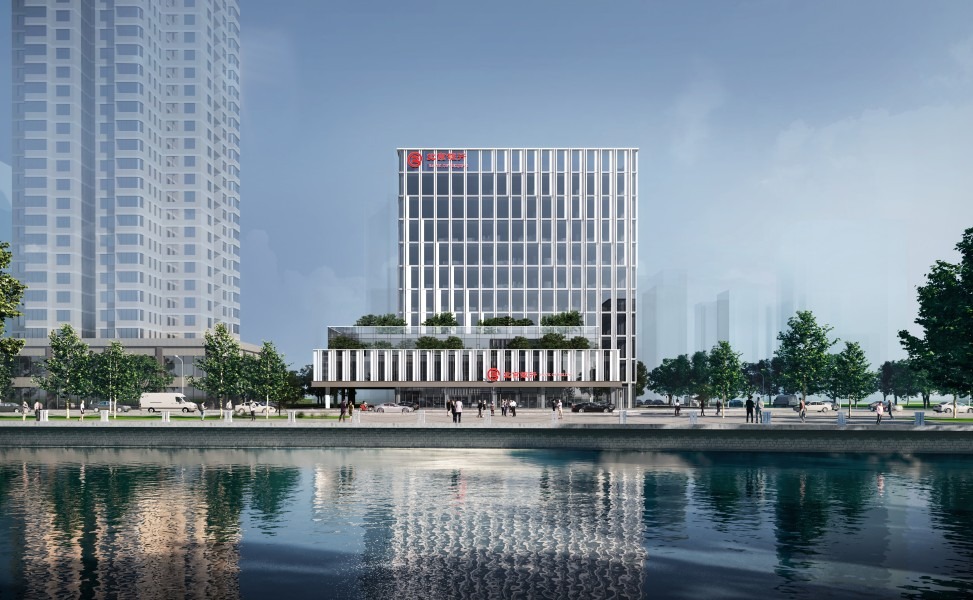项目简介:宁波江北槐树路北京银行新总部高约50米,建筑面积约1.8万㎡。建筑采用主楼加裙房布局:裙房1-3层设营业厅、食堂、报告厅等,主楼4-10层办公。立面现代简约,主楼以竖向序列和表皮变化体现坚固感与滨水灵动;裙房通透玻璃幕墙展现开放形象,共同塑造银行总部新风貌。