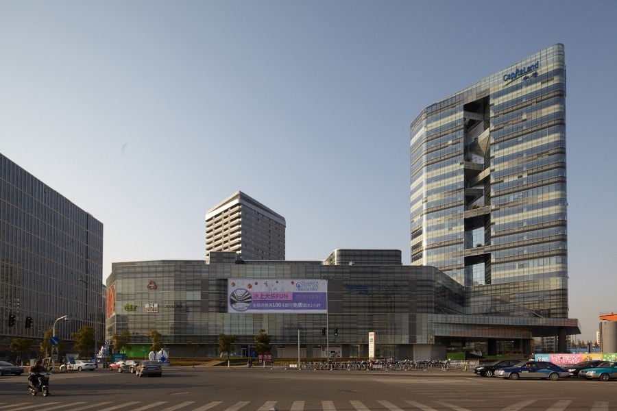 宁波来福士广场位于宁波市江北区中心地段,由一栋19层的甲级办公楼和5层商业裙楼,以及一栋独立的22层公寓式办公组成,地下建筑三层。本设计建筑造型以独特的带条形码式斑纹的玻璃幕墙为主,配以LED灯光,使得建筑夜景流光溢彩,形成强烈而富有时代感的外观效果。本楼投入使用后,立即成为宁波市一个新的城市热点,吸引了大量人群在此购物、休闲。