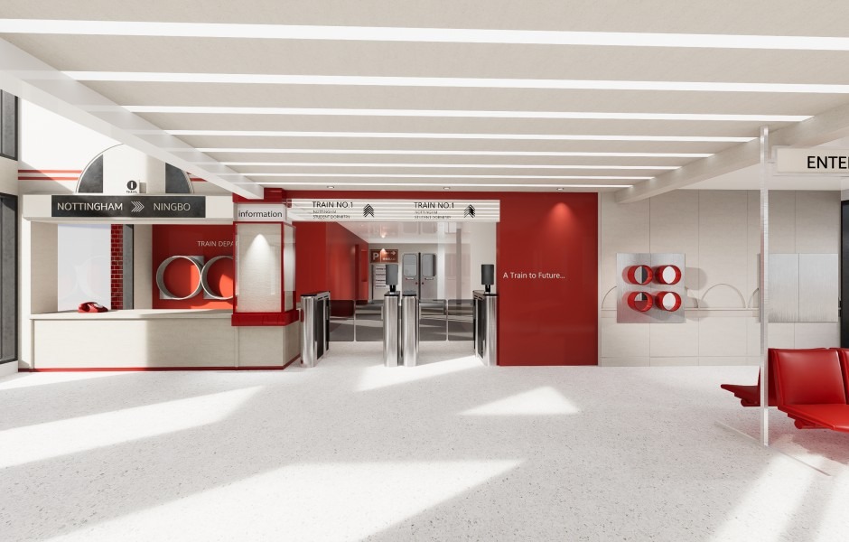 本项目为宁波诺丁汉大学12号学生宿舍公寓楼改造工程,旨在将传统宿舍升级为独具特色的活力生活空间。设计以"时光列车"为核心理念,从英国地铁站汲取灵感,将回字形建筑转化为象征成长旅程的意象载体。