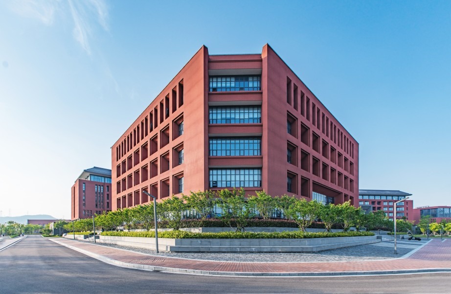 总体布局的灵感来源于海水水波灵动的的意向,建筑单体顺延用地边界,形成几道水平延伸的优美弧线,与灵动、渊博的海洋文化相呼应。同时,建筑的群体布局还结合了中国传统院落式的布局模式,形成颇具中式意味的空间格局,彰显学院的文化底蕴,更使整个建筑群既灵动活泼,又不失沉稳。