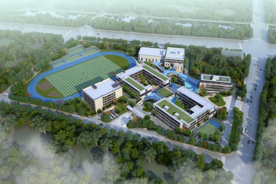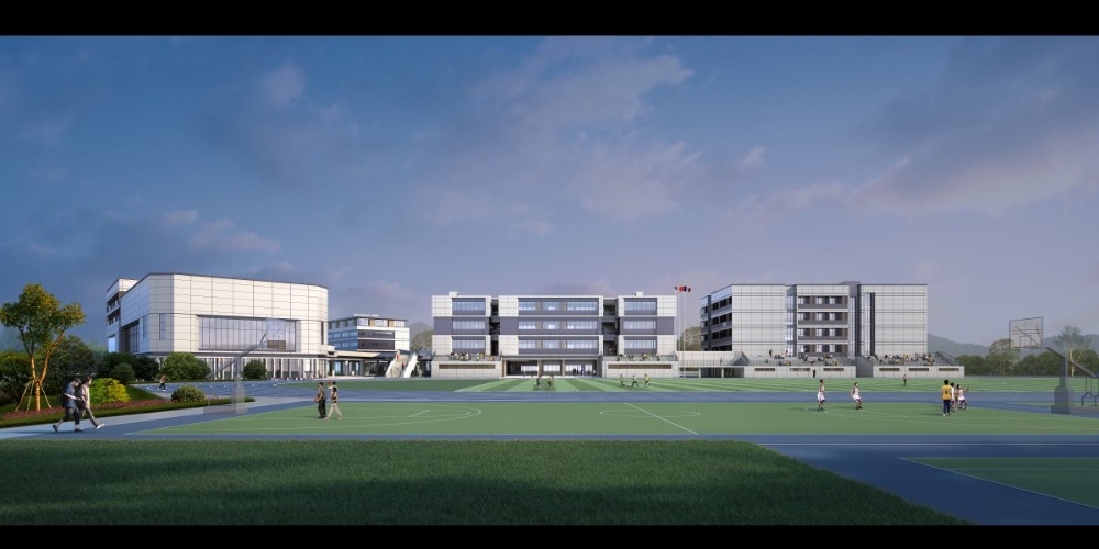 设计说明:项目建筑造型跳脱出当地企业形象主导的现代工业化倾向,选取充满学院风格的“书本堆叠”作为主要形体组织手法,辅以开敞轻盈的连廊,为学生营造出生动严谨且灵动自由的生活学习氛围。“江南书院”风味的青白立面主基调结合中式棕木色格栅元素,为清新的建筑平添了一丝厚重的文化香气。
